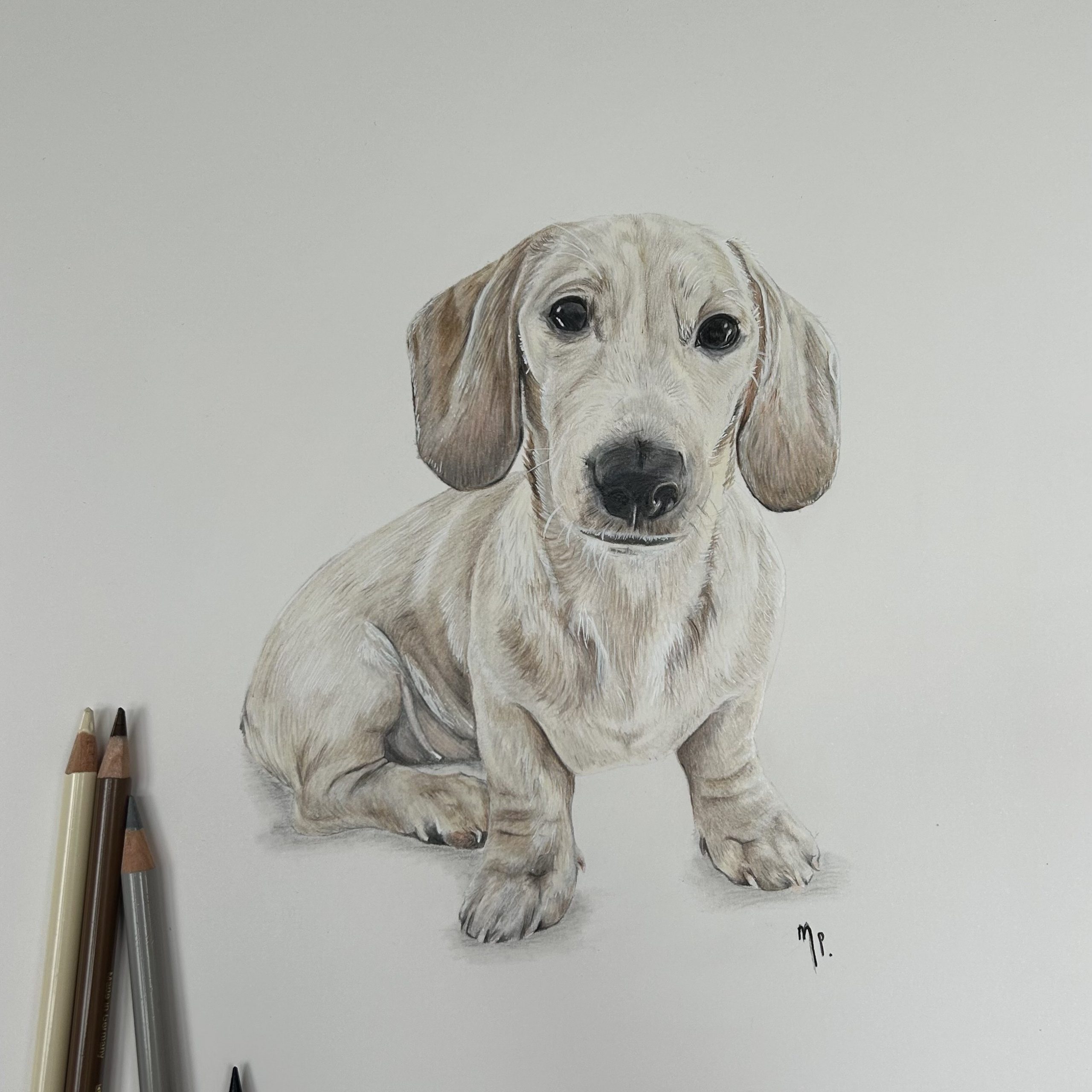 What began as drawings of her friends’ and family’s beloved pets including Joseph’s own Jack Russell, Fergie soon grew into a remarkable portfolio of work. Over the years, Millie has honed her technique into something truly special: portraits so detailed and expressive they feel almost photographic, yet still unmistakably hand drawn and unique to her artistic style.